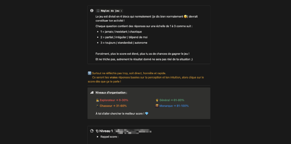 Dans ce template que tu pourras garder pour toi tu trouveras un jeu qui te permettra de définir ton niveau d'organisation et de productivité !