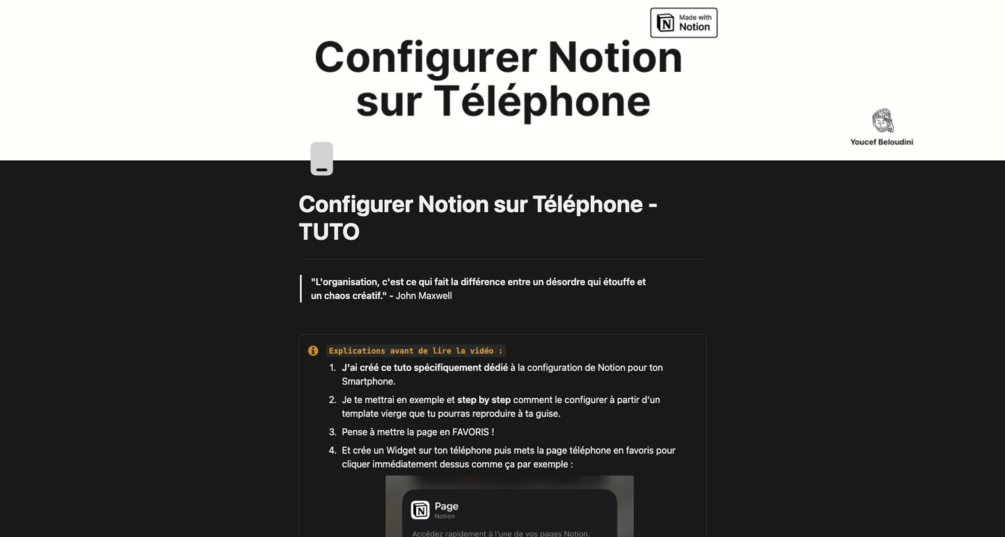 Dans cette vidéo je t'explique pas à pas comment construire ta page Notion sur téléphone pour plus de facilité, navigation et gain de temps !