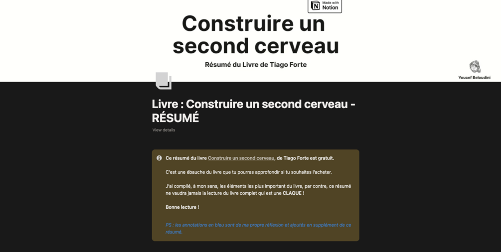 En téléchargeant tu auras accès à un Notion avec le résumé des 3 parties du livre.